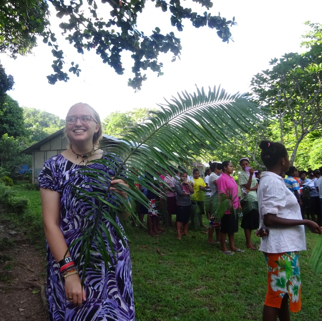 Unsere Prozession begann auf dem Gelände der Grundschule und wir liefen bis zur Kirche, immer mit den Palmzweigen wedelnd. Die Mädchen sangen Palmsonntagslieder in ihren eigenen Sprachen, es war sehr schön!